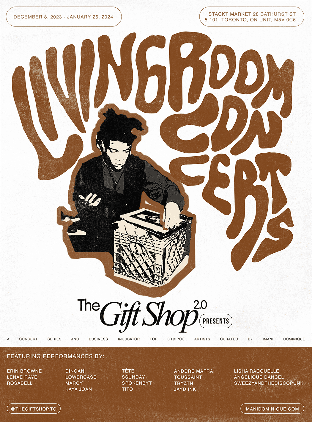 The posters and stickers cultivated a community-driven experience, increasing foot traffic by 35% over the duration of the event. We attracted 150+ people to The GiftShop's Living Room Concerts each week for a consecutive 9 weeks. The collateral became collectible art pieces that extended the life of the campaign beyond the gallery, contributing to a 25% increase in artist exposure and sales. Our approach generated both cultural and financial value.